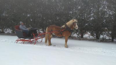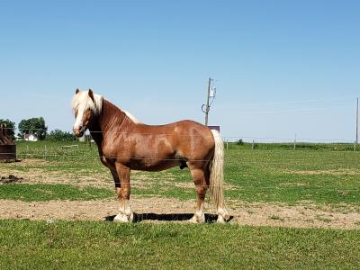 Sorrel Reg. Haflinger Stallion- Proven DNA tested 55" Pasture or Hand Bred Good for farrier work Broke to drive double and single throws good conformation, sound, and good minded foals. All around great Stallion. | |||