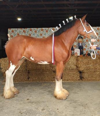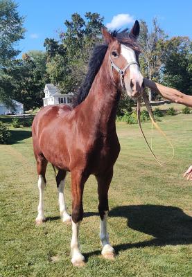 Violet is a 1 year old clydesdale/hackney cross She stands 51 inches tall, quick learner and has an undocked tail. | |||