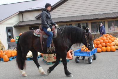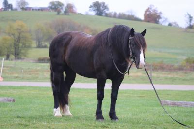 HERSHEY'S RANDY WOW WOW!!!! Is a 11 year old grade percheron - quarter horse cross. Randy is absolutely the real deal it don't matter if your 90 or 9 years old you will fall head over heals for randy. He is very well broke to ride and drive single or double he has been on lots of trails, through the creeks ,over logs and so much more. Randy is good for any level rider he has the smoothest canter to impress the professionals and calm and easy going for the absolute beginners. Randy routine as of now is going out to pasture at night and in the morning you whistle to him and he will come trotting to the gate for his breakfast. Now with the nights getting cooler randy might go out during the day weather permitting. Randy is here at hershbergers farm and bakery giving horse back rides in the merry go round and on some days he gives carriage rides on the farm through lots of heavy traffic. He gets along great with other horses and is also used to being around all kinds of animals such as cows ,pigs goats, and lots more. If your looking for that amazing boy that you can't find fault with look no further. HERE HE IS HERSHEY'S RANDY | |||