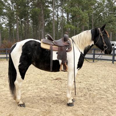 Opal is a 6 year old, 15.2 had, Spotted Draft mare. She has a good start under saddle and has no blowup/buck to her! This girl is safe and has a kind eye. Opal isn’t all speed but trots and canter with a little bit of encouragement, stops and backs. She is willing to try to please her rider and is open to new things. This girl is able to go any direction and has the ability to excel! A great mind and the best manners. Sells with a 10 day money back guarantee. https://youtu.be/2g7CE0IkB8E?si=2xRgWIKkjKmicKXg | |||
